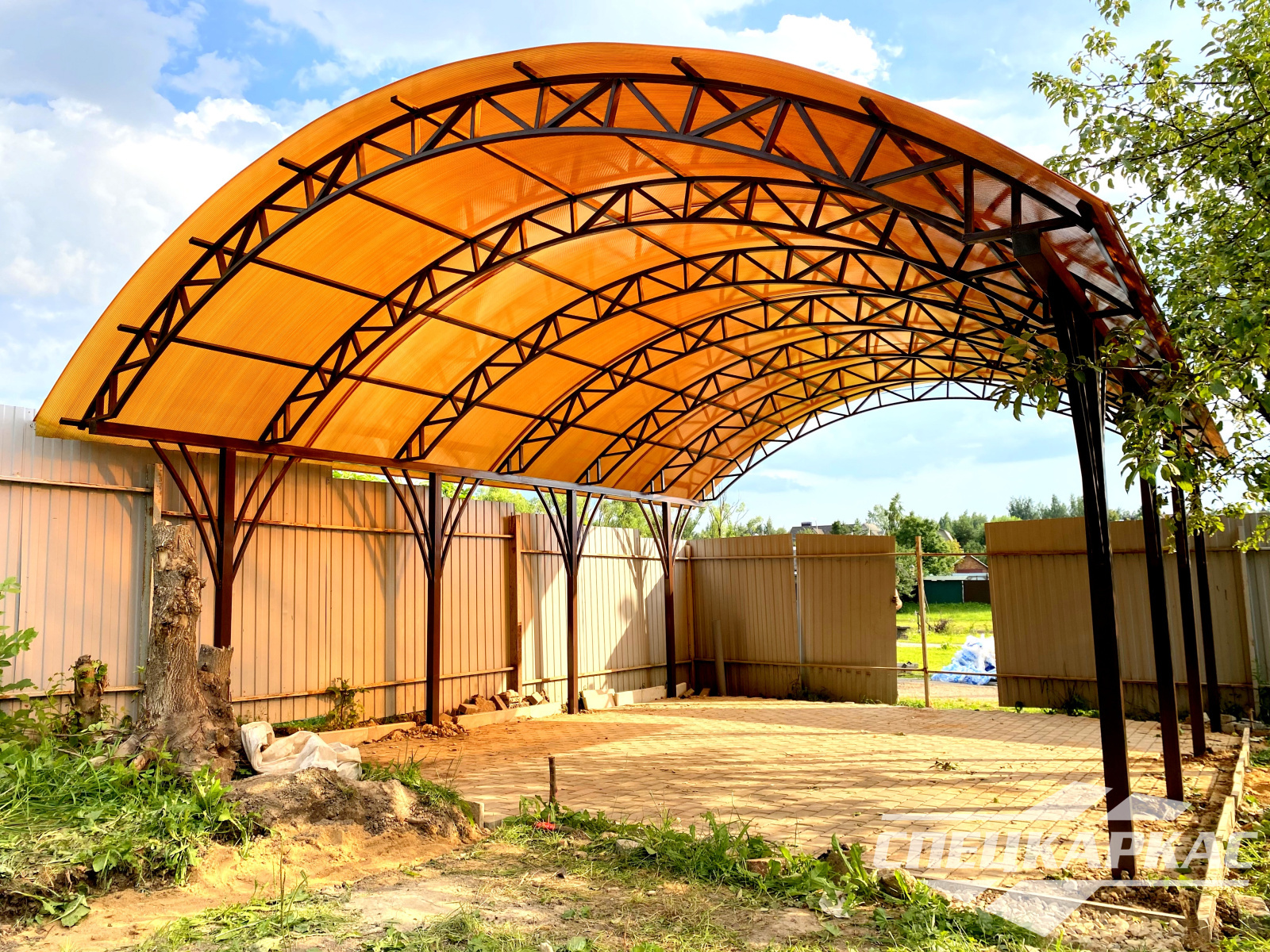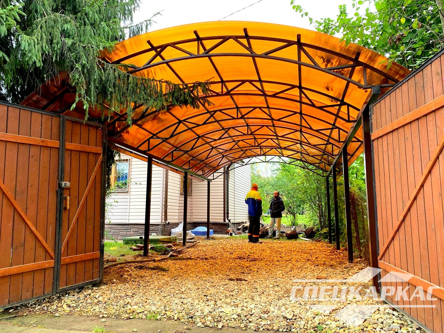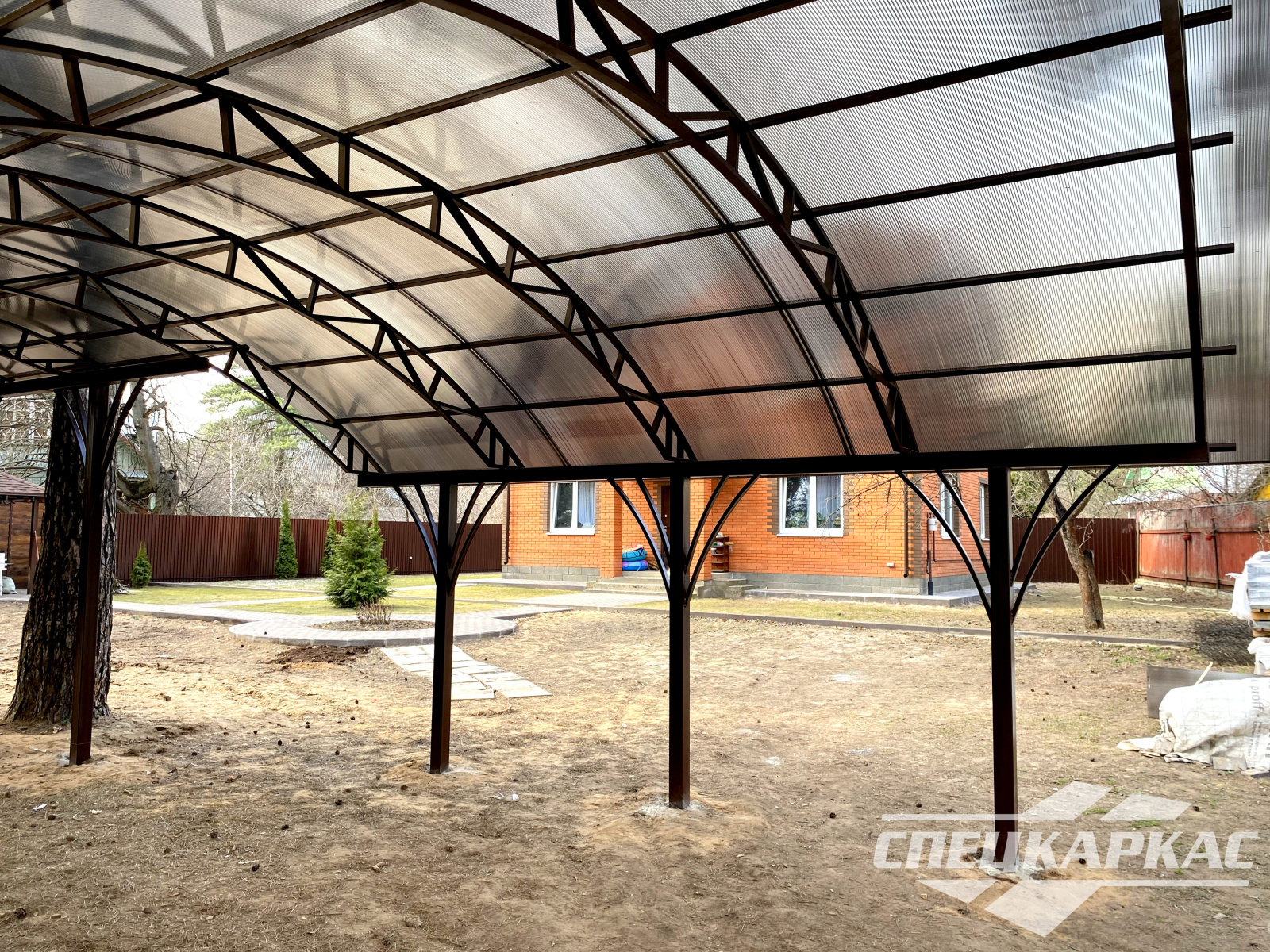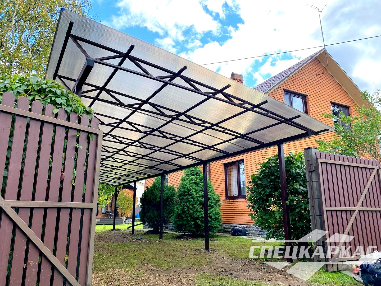 3D-проекты с картинками к моделям в каталоге дают точное представление о том, как устроены металлические навесы от СПЕЦКАРКАС. Но мы понимаем, что этой информации мало для того, чтобы составить полное представление о наших сооружениях. Поэтому мы сопровождаем коллекцию навесов из поликарбоната фото уже готовых объектов, которые мы сдали клиентам под ключ в Алексине или Тульской области.